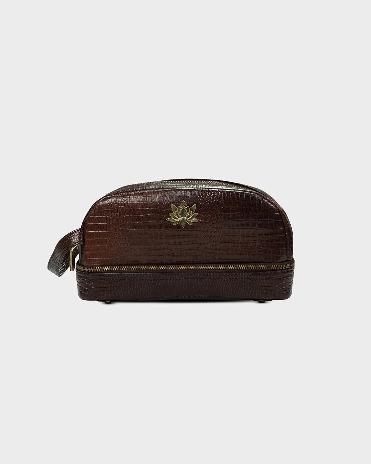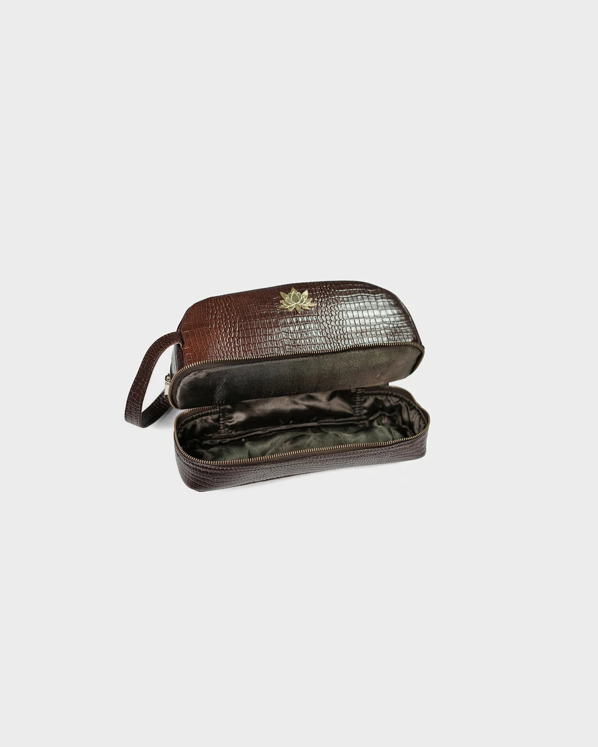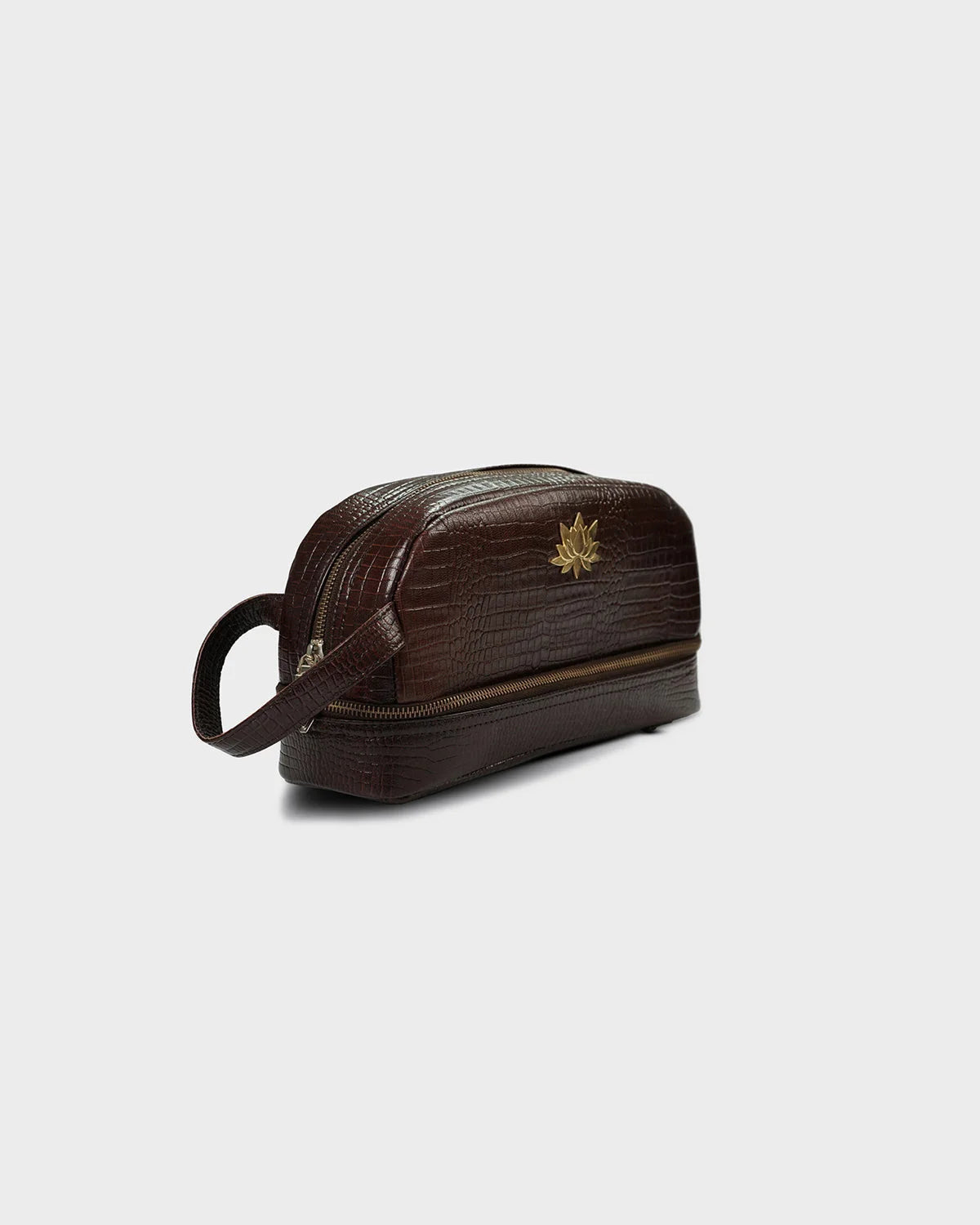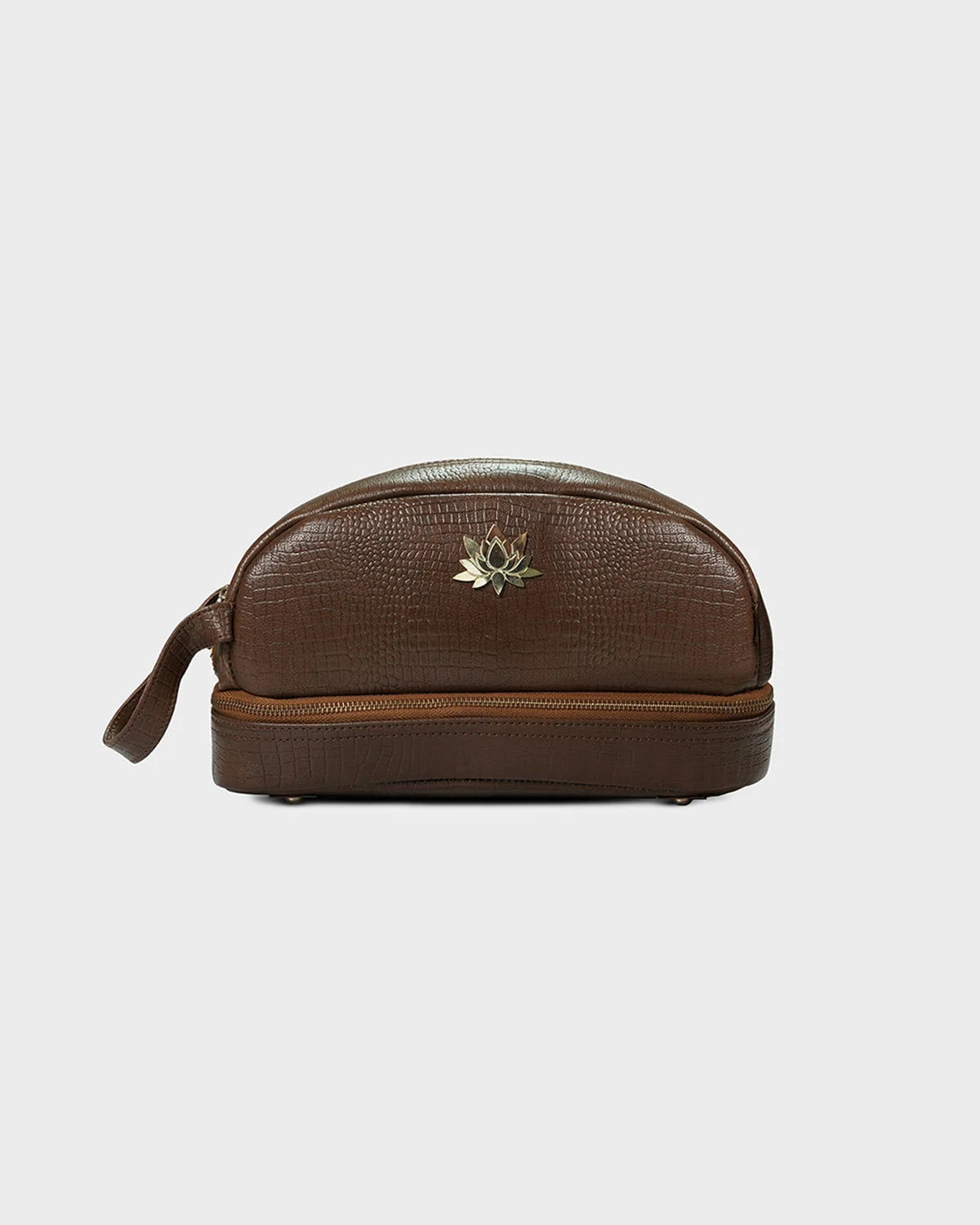 Designed for the elegant traveler and the beauty connoisseur alike, the CITRINE lotus vanity pouch in croc texture is a refined companion for your everyday rituals.The embossed croc-textured leather adds a touch of vintage charm, while the structured silhouette ensures both form and function. Finished with CITRINE’s signature gold-plated lotus emblem, this pouch brings a sense of calm luxury to your dressing table or carry-on. Ideal for storing cosmetics, jewellery, or essentials on the go.