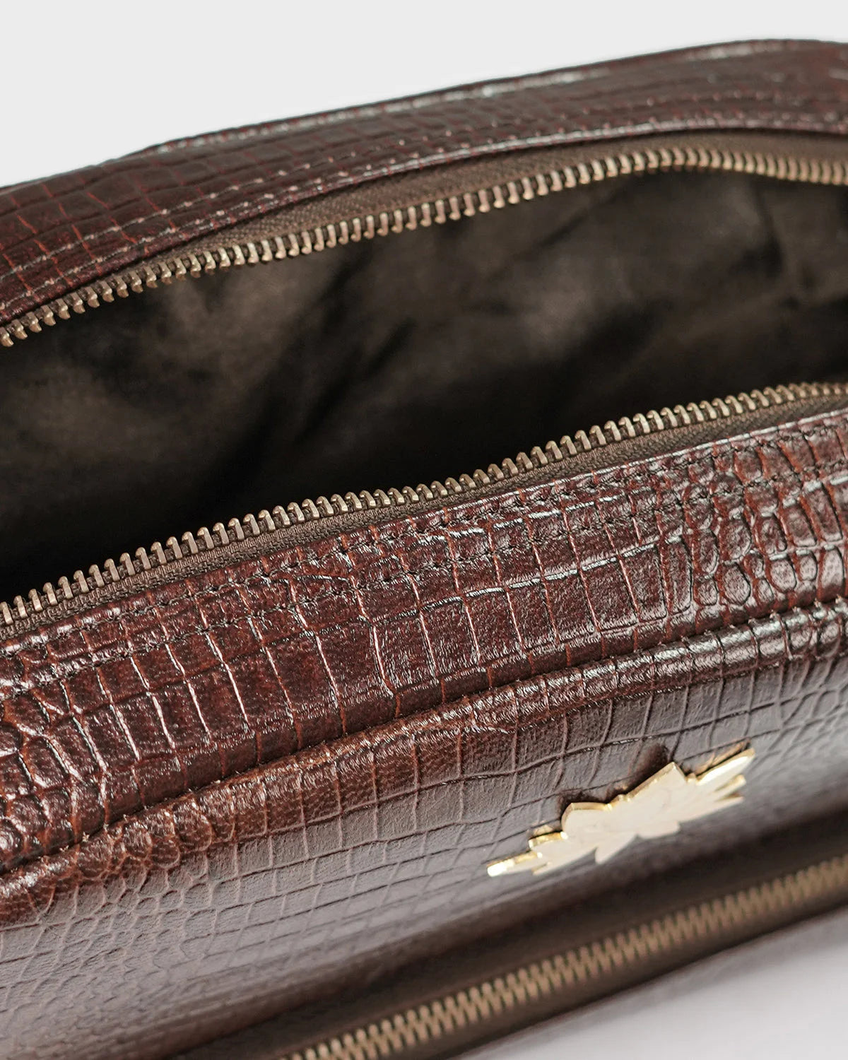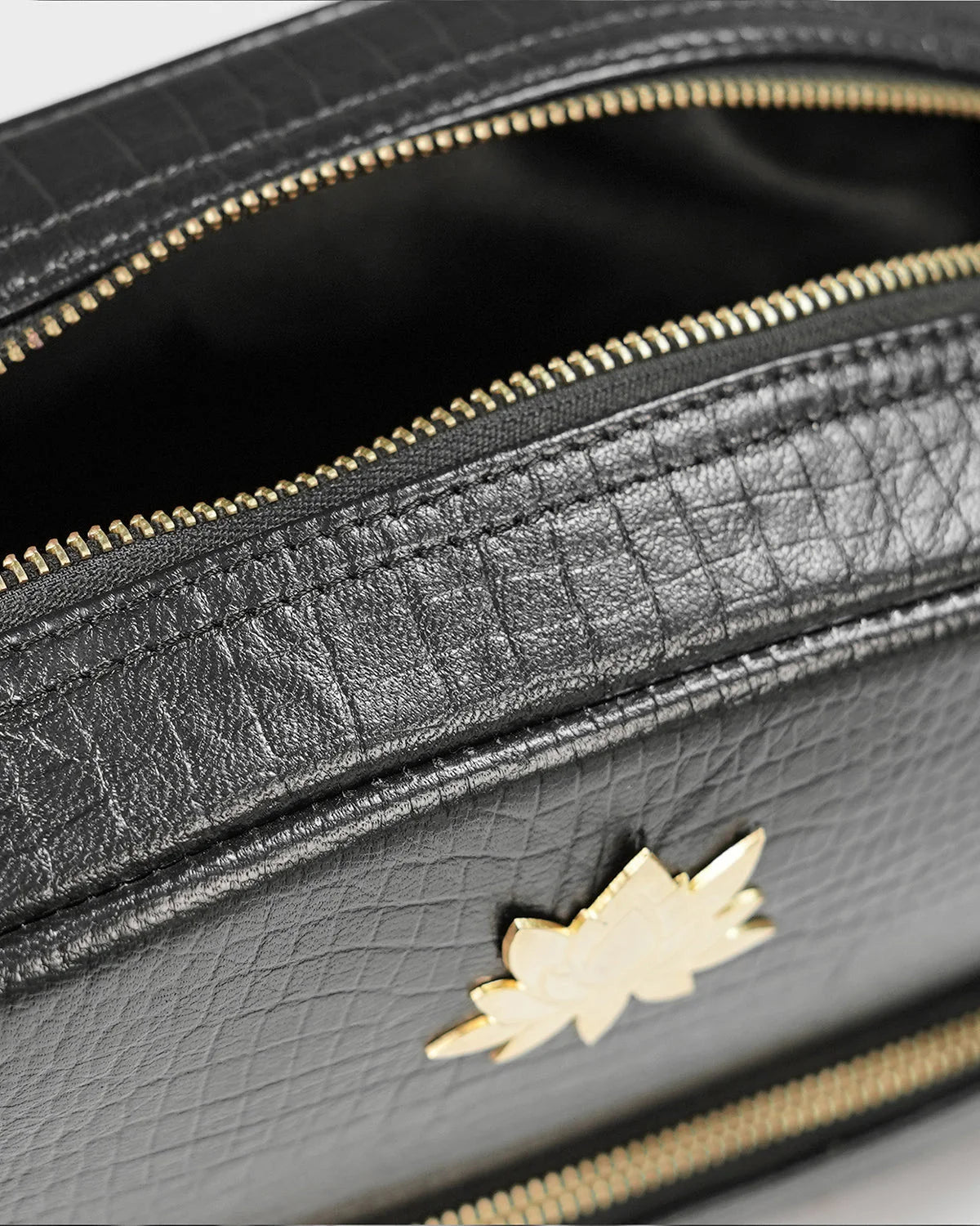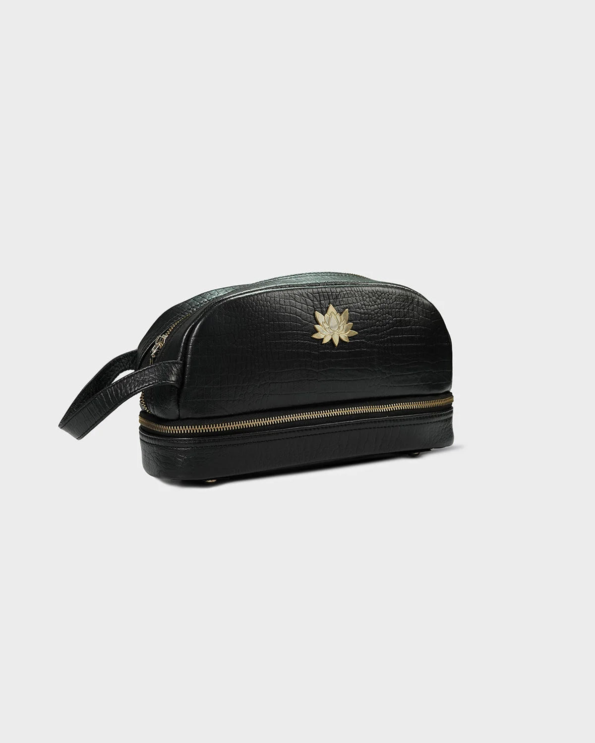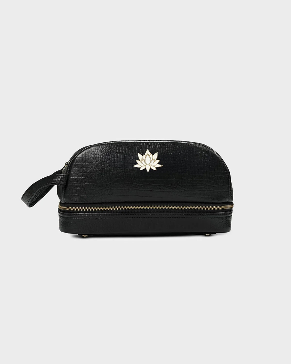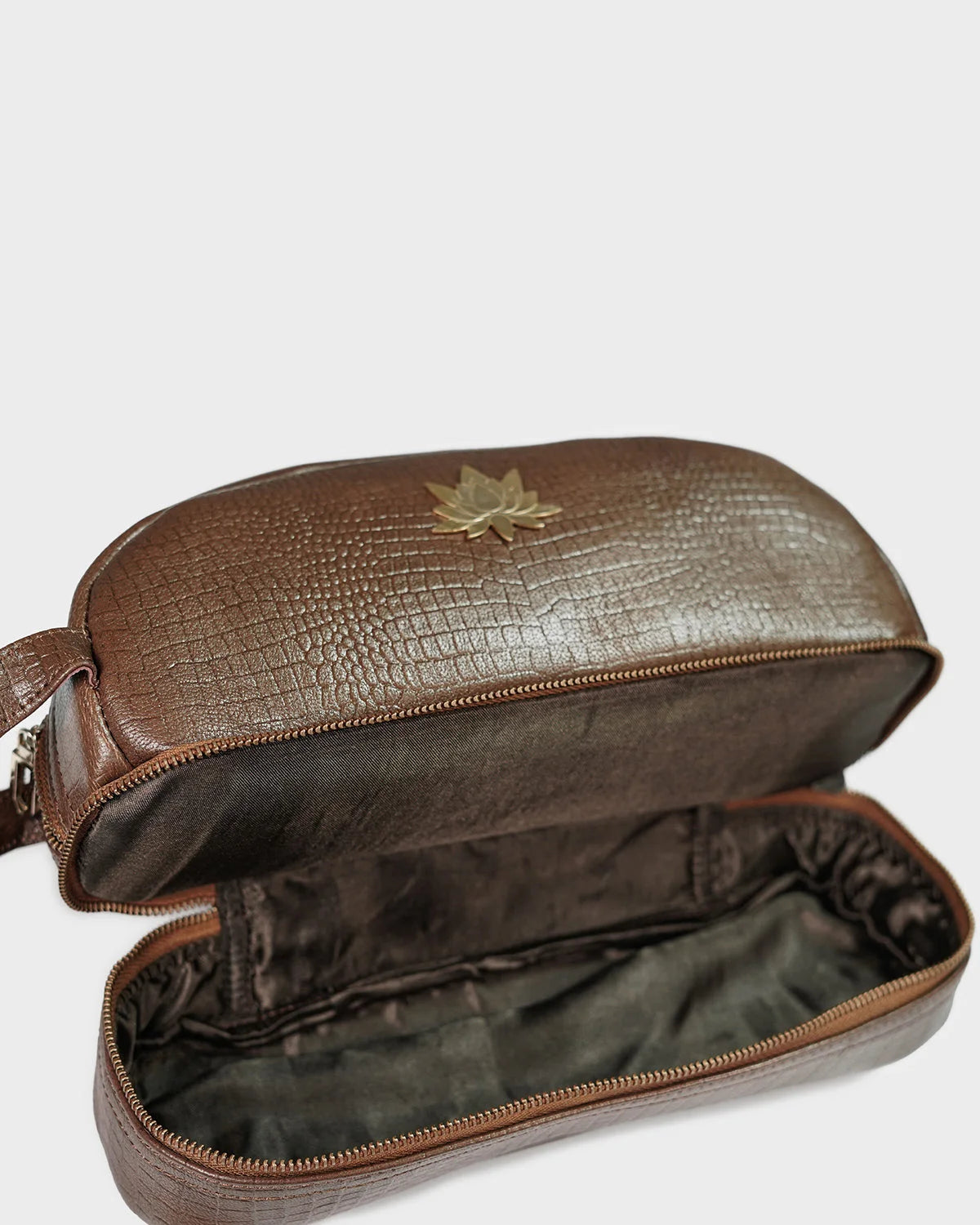 Designed for the elegant traveler and the beauty connoisseur alike, the CITRINE lotus vanity pouch in croc texture is a refined companion for your everyday rituals.The embossed croc-textured leather adds a touch of vintage charm, while the structured silhouette ensures both form and function. Finished with CITRINE’s signature gold-plated lotus emblem, this pouch brings a sense of calm luxury to your dressing table or carry-on. Ideal for storing cosmetics, jewellery, or essentials on the go.